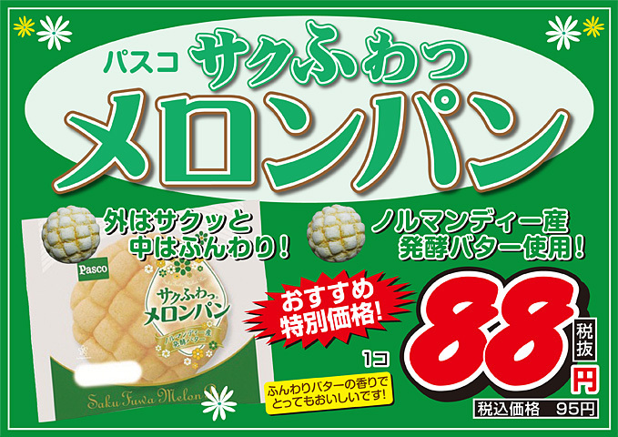 パスコ メロンパン1個88円